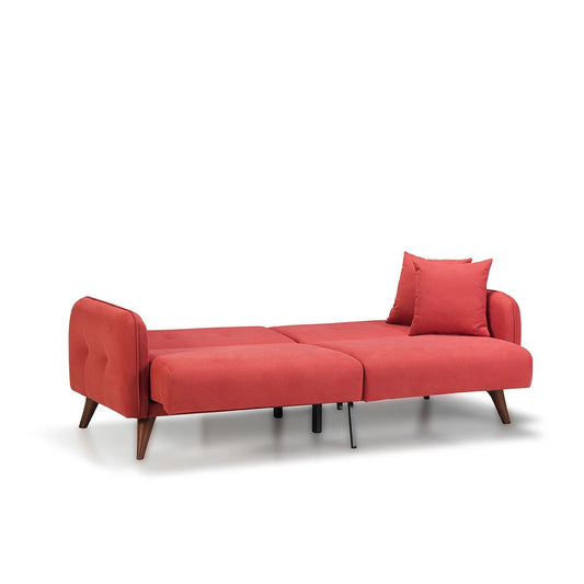 3 Seater Sofa Bed Red-Orange Velvet Foldable Lounge Furniture Sofabed