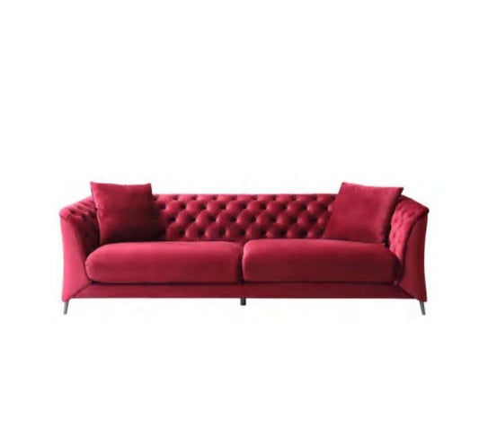 3 Seater Red Velvet Chesterfield Sofa Living Room Salon Luxury Furniture