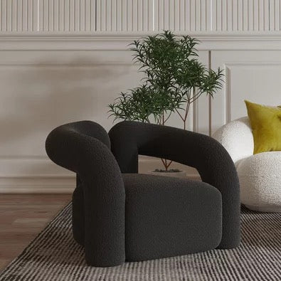 Nordic Black Wool Accent Chair, Modern Adjustable Armchair for Living Room