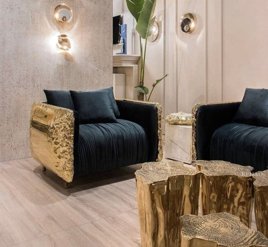 Luxury Baroque 1-Seater Sofa - Royal Oak & Brass, Customizable