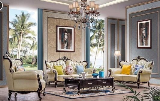 Baroque Design Living Room Furniture Solid Wood Hand Made Royal Sectional Sofa Set