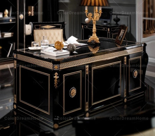 Baroque Italian Classical Royal Luxury Office Desk & Chair Set