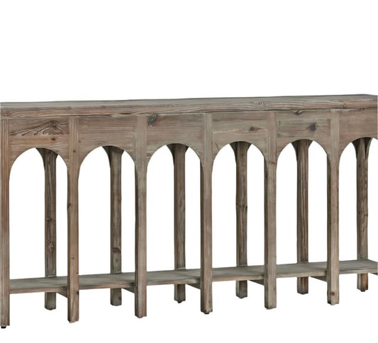 Sintesi French Style Arc Deco Console Table - Vintage Pine Hallway Accent Table