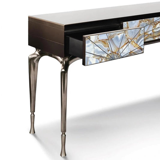 Italian Luxury Marble & Metal Console Table - Custom Arado Vis Design