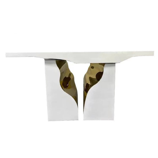 Luxury Modern Marble Console Table with Gold Stainless Steel Legs, Pandora & Fish Maw White, Hallway Furniture