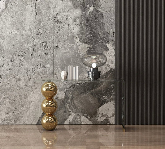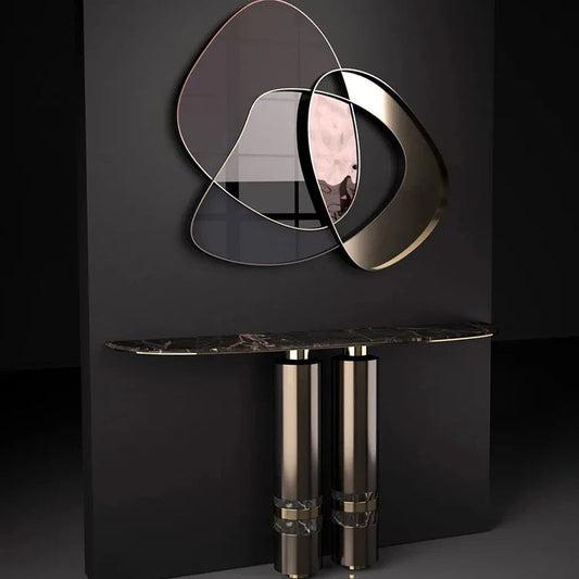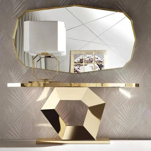 Minwall Luxury Golden Console Table - Mirrored Glass & Marble Hallway Accent