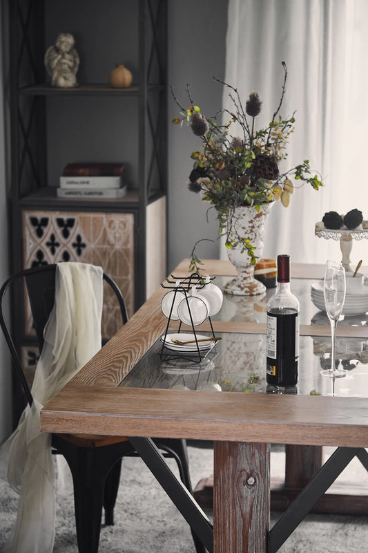 TTWO Rectangular Wood & Glass Dining Table, Farmhouse Dining Table Industrial Design