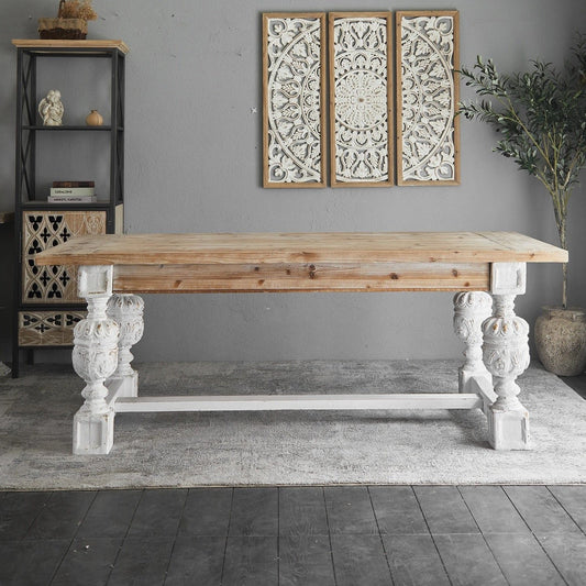 Solid Wood White Dining Table - Retro Pastoral Farmhouse Dining Table