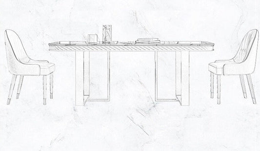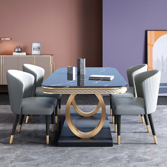 Luxury Modern Rectangular Slate Dining Table Set - Marble Texture Customizable
