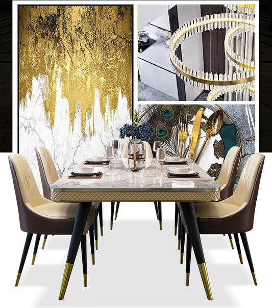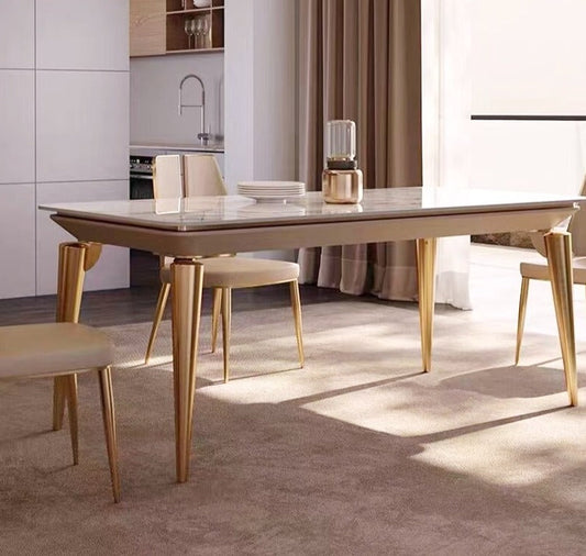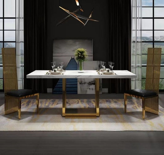 Modern Luxury Marble Rectangular Dining Table Set - Stainless Steel Gold Plated Base