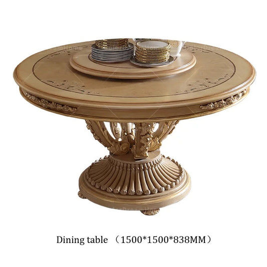 TT Design Luxury Baroque 6-Seater Round Dining Table Set - Antique Solid Wood