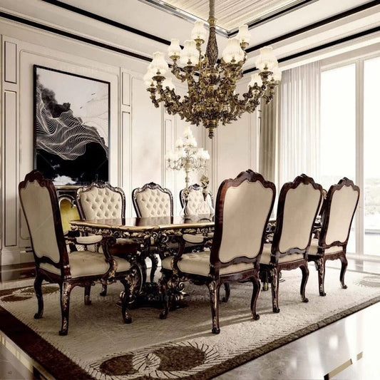 ELLE CASA French Baroque Luxury Dining Table - Hand-Carved Solid Wood Antique Set
