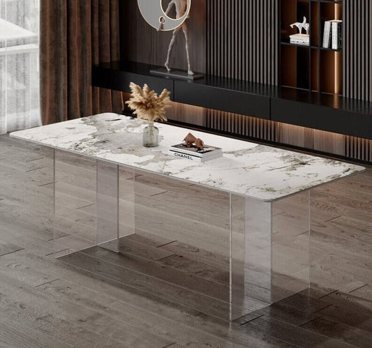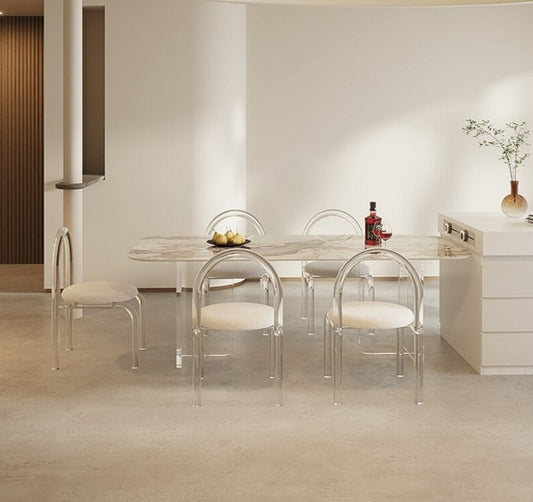 Nordic Rock Slab Rectangular Dining Table Set with Clear Acrylic Floating Ghost Base