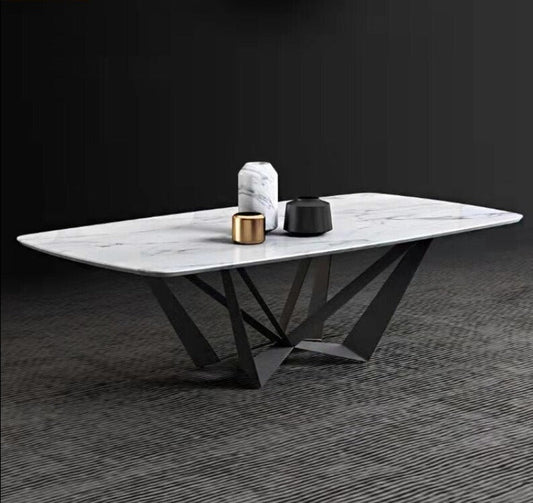 Luxury Marble Dining Table Set - Modern 8-10 Seater Rectangular White Black Table