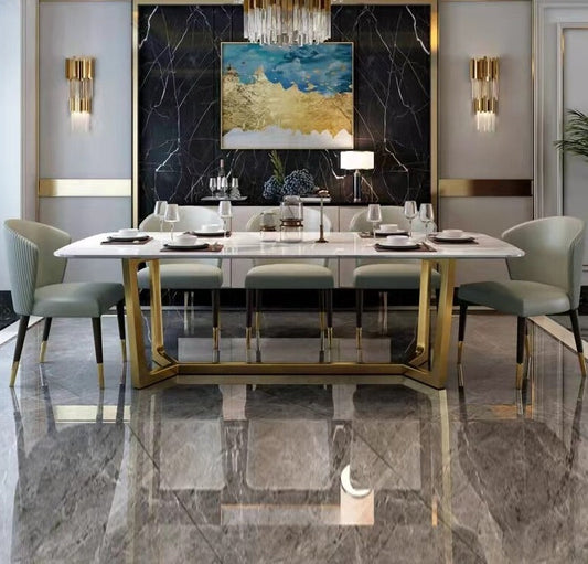 Italian Luxury Marble Dining Table Set - Rectangular Modern Stainless Steel Leg