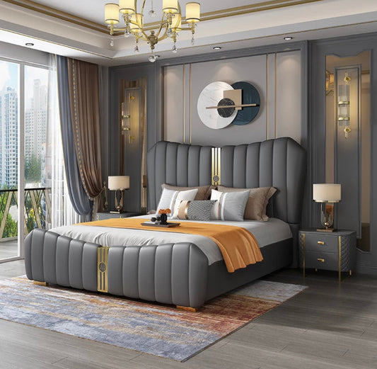 Double Bed High Quality Light Luxury Leather Bed Bedroom Furniture 1.8m Bett