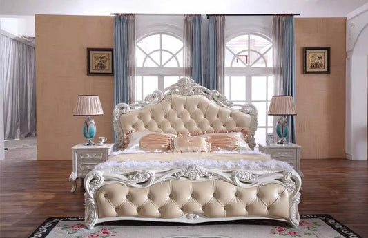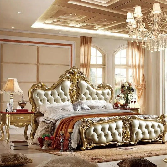 Double Bed Baroque Design Carved Royal Italian Luxury King Size Bedroom Furniture