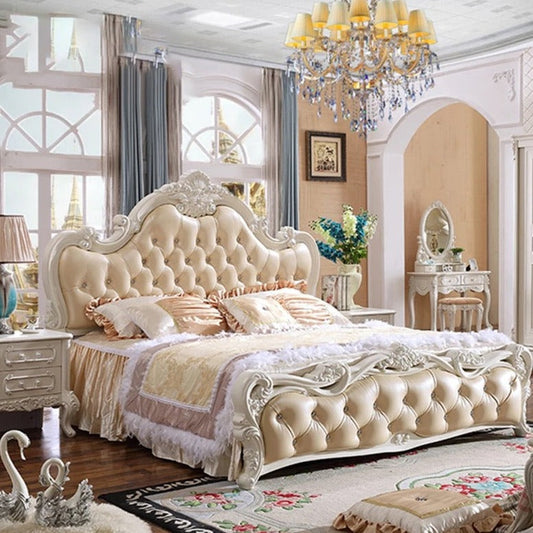 Double Bed Baroque Design Carved Royal King Size Bedroom Furniture