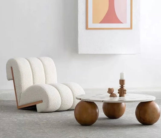 Panton Luxury Lounge Chair - Solid Wood, Fabric, Beige