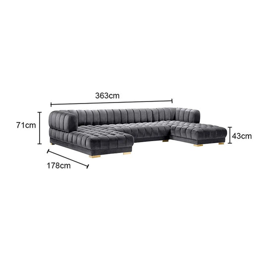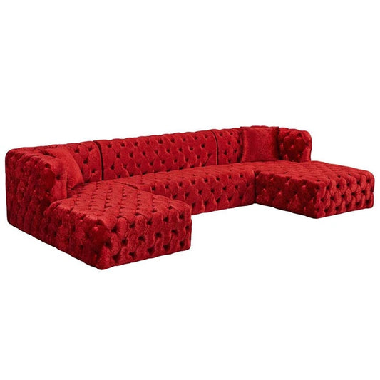 U Shaped Sofa Designer Button Red Velvet Tufted Two Chaise Salon Sofa Set