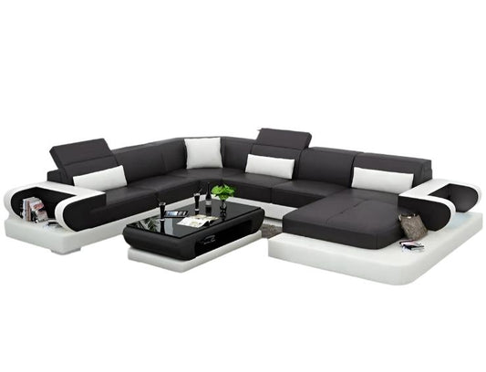 U Shaped Red and Black Genuine Leather Sofa Living Room Furniture Salon Sofa Set