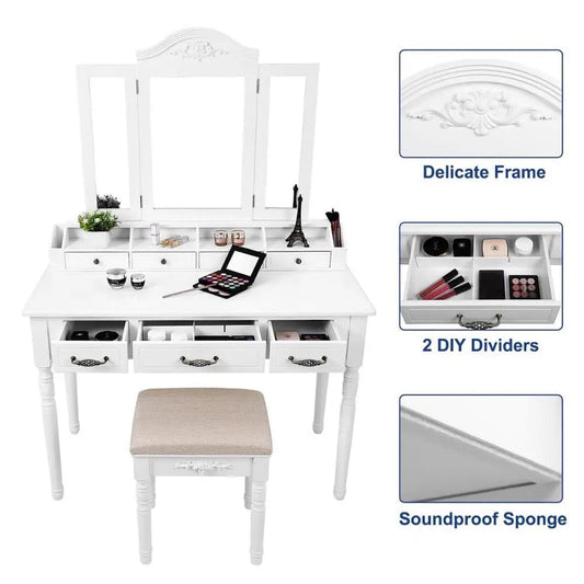 Bedroom Vanity 7 Drawers Wooden Makeup Vanity Dressing Table Set
