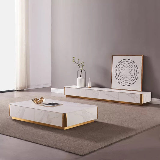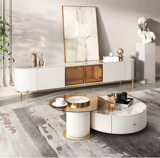 Tv Stand Modern Luxury Jazz Snow White Living Room TV Cabinet Telescopic Marble Fernsehtisch