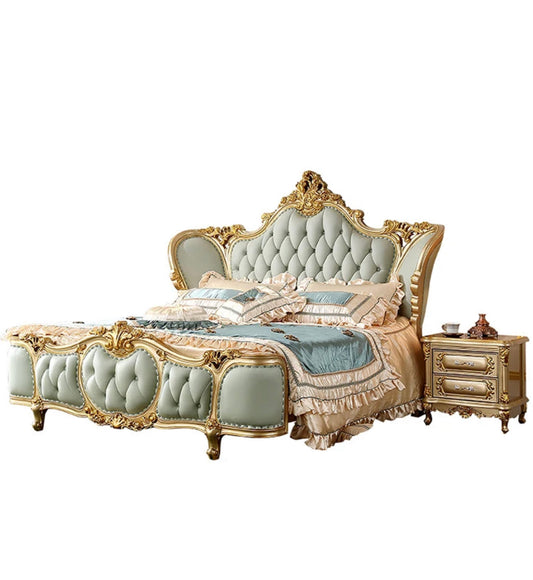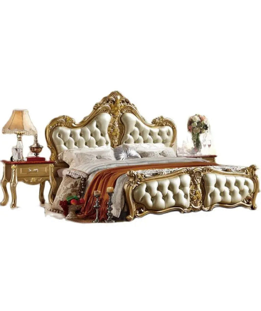 Double Bed Set Luxury Bedroom Solid Wood Leather Bed Baroque French Royal Design Master Bedroom Furniture Set