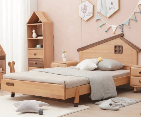 Kids Bed Nordic Style Space Saver Log Color Kids Bedroom Furniture Solid Wood Children Bed