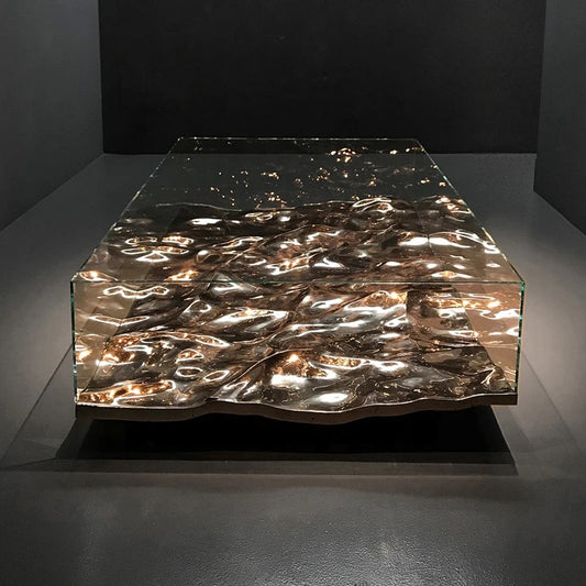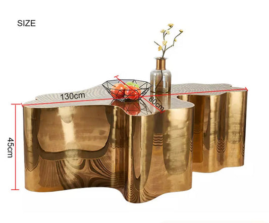 Oppao Irregular Tree Stump Coffee Table - Gold Stainless Steel Luxury Center Table