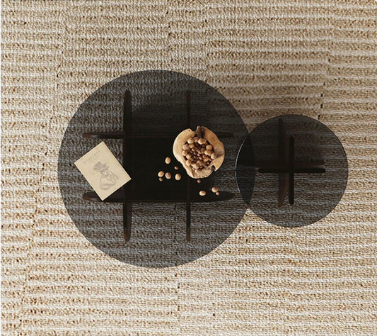 Luxury Glass & Wood Nesting Coffee Tables, Modern Round Adjustable Design