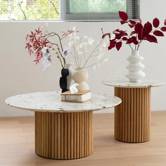 Light Luxury Marble & Wood Nesting Coffee Tables, Modern Round Art Design