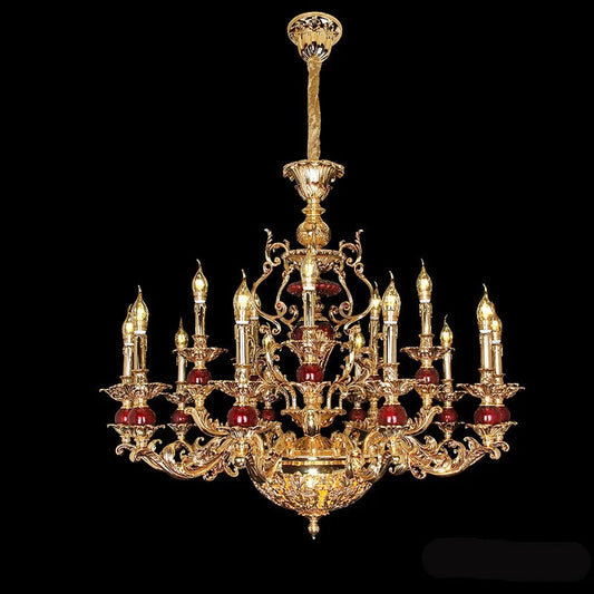 Lámpara colgante luces nuevo diseño vintage gran araña de brazo de cristal de aleación de zinc rojo