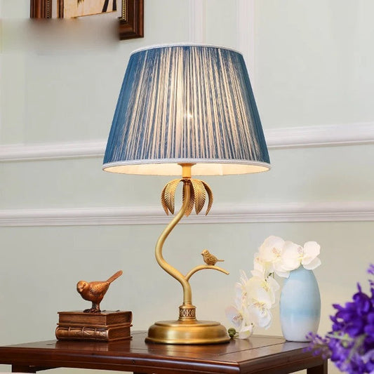 Lámpara de mesa Vintage cobre lujo flor pájaros luces de mesa