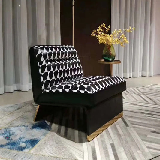 Nordic Leisure Legless Sofa Chair - Leather, Black/White Grid, Revolving