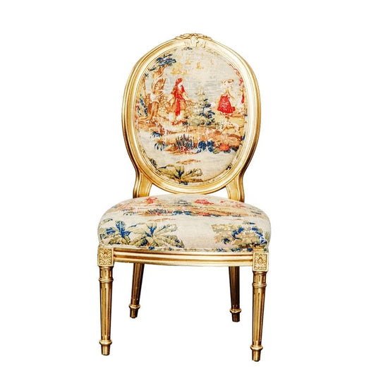 Antique Baroque Dining Chair - Birch Wood, American Cloth, Chair