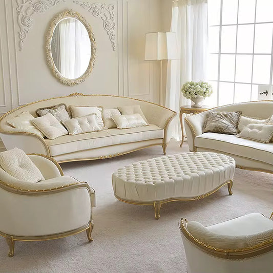 3 Seater Sofa Gold White Painted Birch French Baroque Design Solid Wood Sofas Living Room Furniture