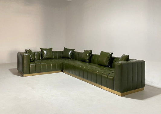 L Shaped Sofa Green Leather Upholstery Sofa Set Fall Winter 2025 Interior Design Living Room Office Furniture