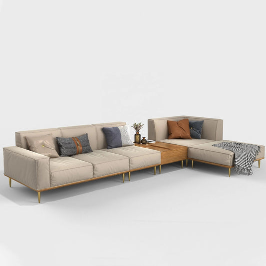 L Shaped Sofa High End Modern Design German Wood Leather Sofas Living Room Furniture