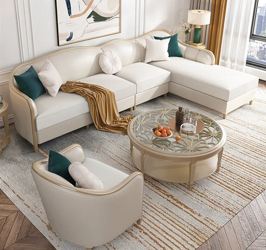 L Shaped Sofas French Provincial Solid Wood Leather Sofagarnituren Living Room Furniture Design