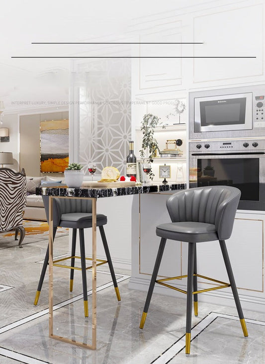 Modern Gold Bar Stool High Chair - PU Leather, Classic