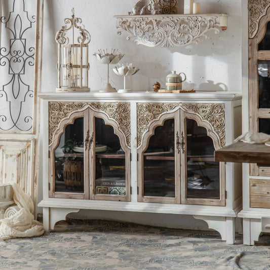 Light Luxury Sideboard, Buffet Cabinet French Solid Wood White Storage Accent Cabinet