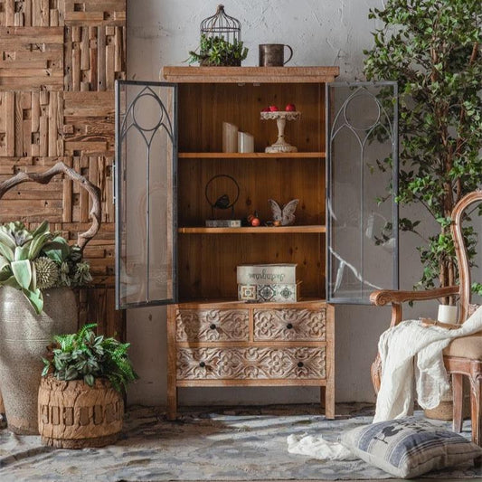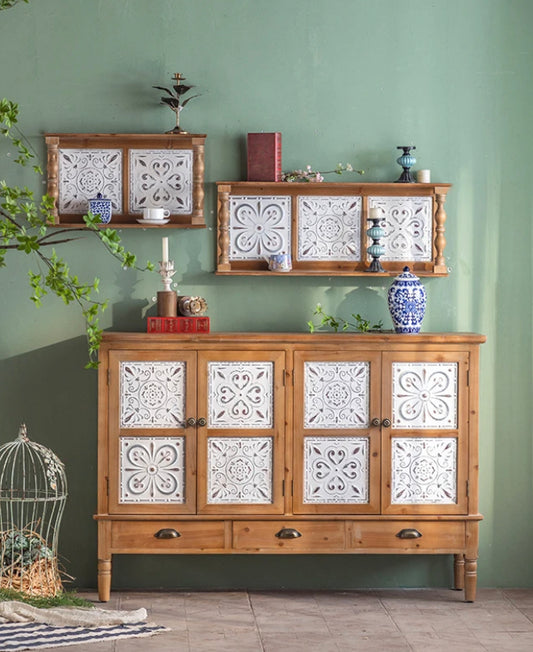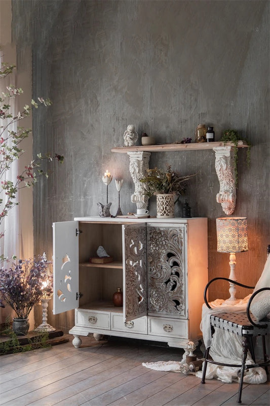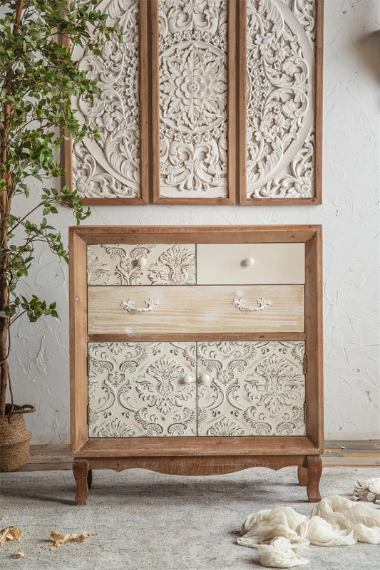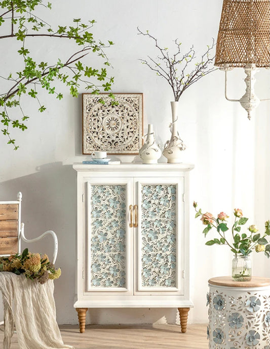 Home Storage Cabinet Living Room Bedroom Carved Wood Antique Accent Cabinet