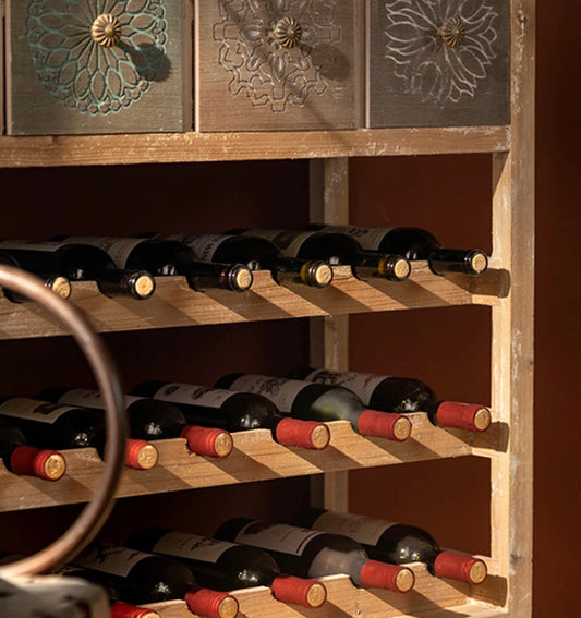 Living Room Retro Bar Wine Rack 3 Layers Solid Wood Wine & Liquor Accent Cabinet