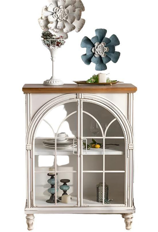 Living Room Cabinets White Solid Wood Glass Display Side Storage Cabinet Kitchen Accent Cabinet