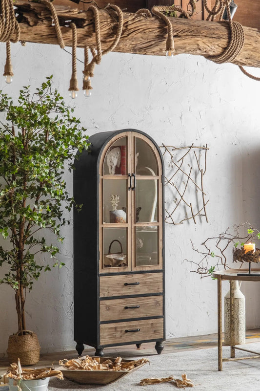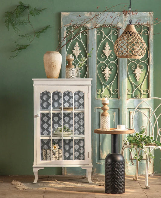 Living Room Furniture Black Iron Frame Vintage Storage Cabinet Bedroom Side Accent Cabinet