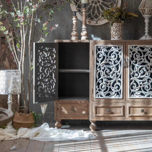 Retro Luxury Sideboard Solid Wood Living Room Cupboard Buffet Kitchen Accent Cabinet