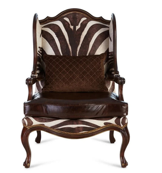 TT Zebra Print Leather Armchair, French-Style Wingback Accent Chair
