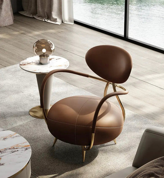 Luxury Italian Leather Leisure Armchair, Modern Designer Accent Chair