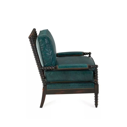 Accent Green Leather Classic Armchair, Luxury European Lounge Chair